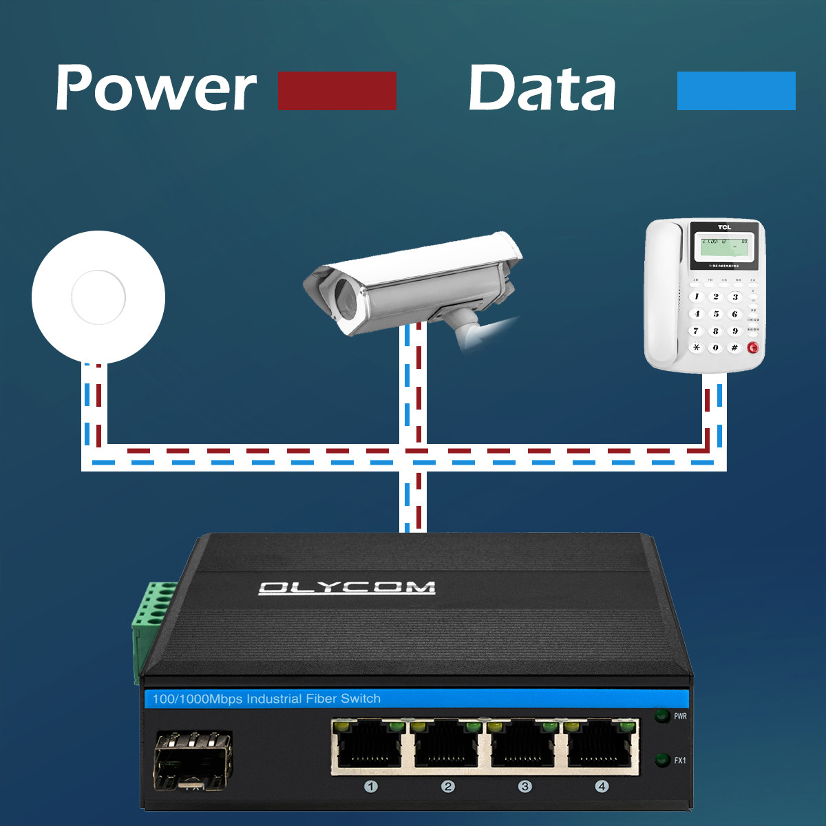 5 منافذ Compact DIN Rail Gigabit PoE Fiber Switch