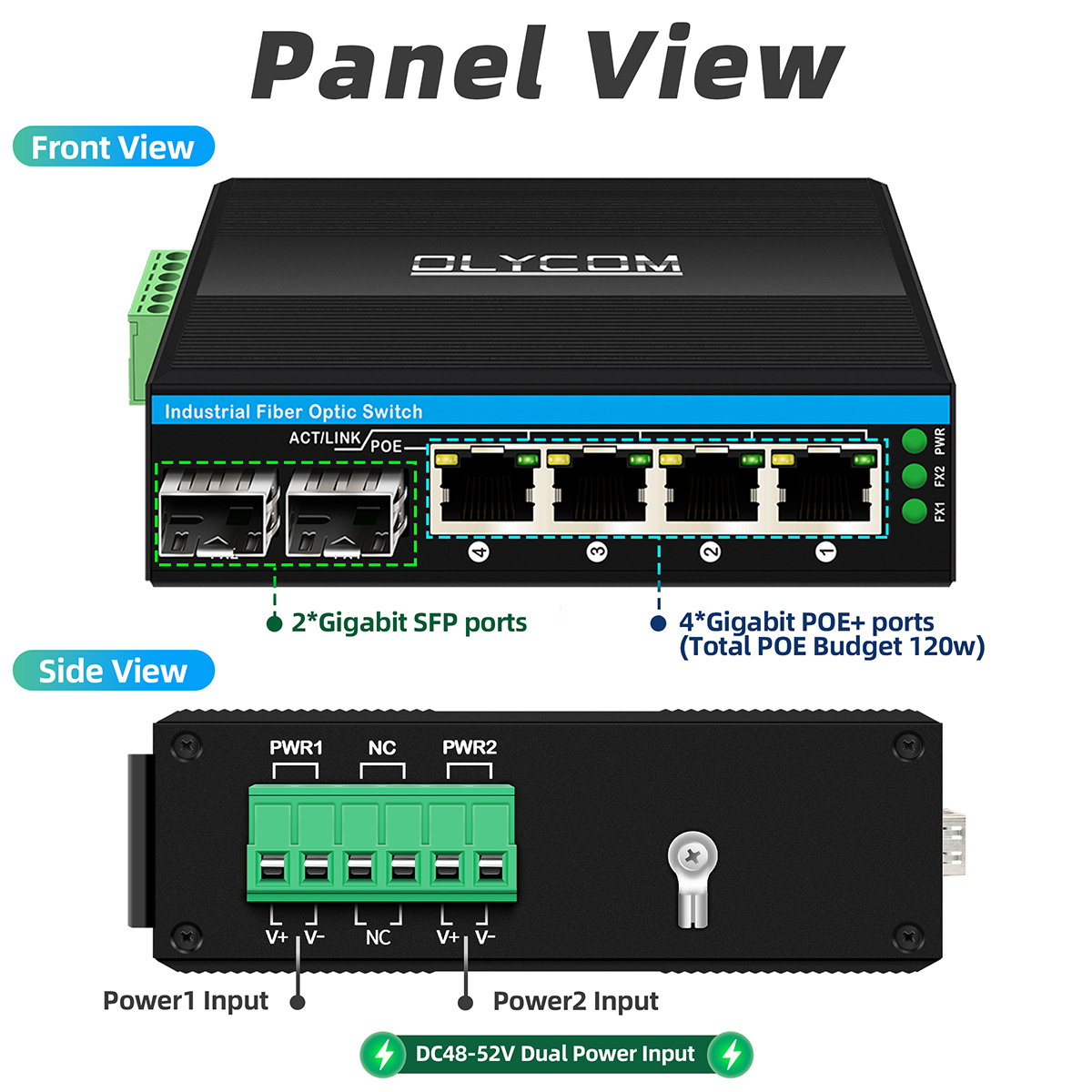 مفتاح POE جيجابت، مفتاح إيثرنت غير مُدار، 120 واط، POE af/at، مدخل طاقة DC48V